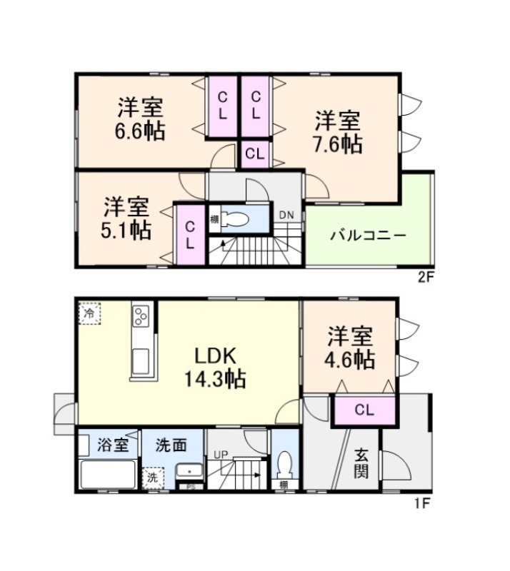 | 間取り詳細 | LDK 14.3畳 、 洋室 7.6畳 、 洋室 6.6畳 、 洋室 5.1畳 、 洋室 4.6畳 |
