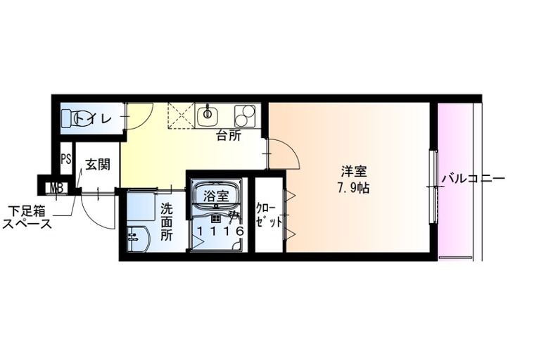 | 間取り詳細 | K 2.5畳 、 洋室 7.9畳 |