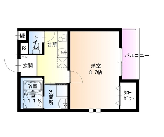 | 間取り詳細 | K 2.5畳 、 洋室 8.7畳 |