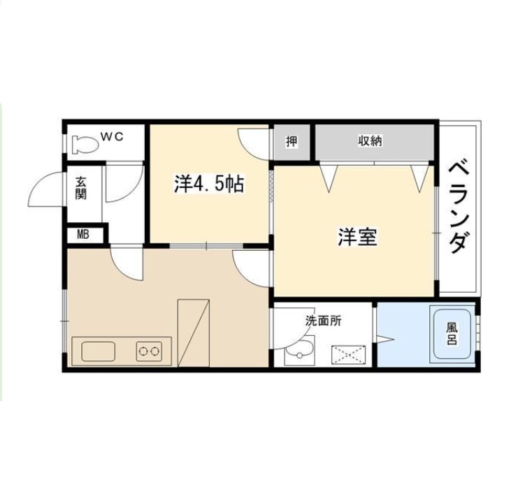 | 間取り詳細 | LDK 8畳 、 洋室 6畳 、 洋室 4.5畳 |