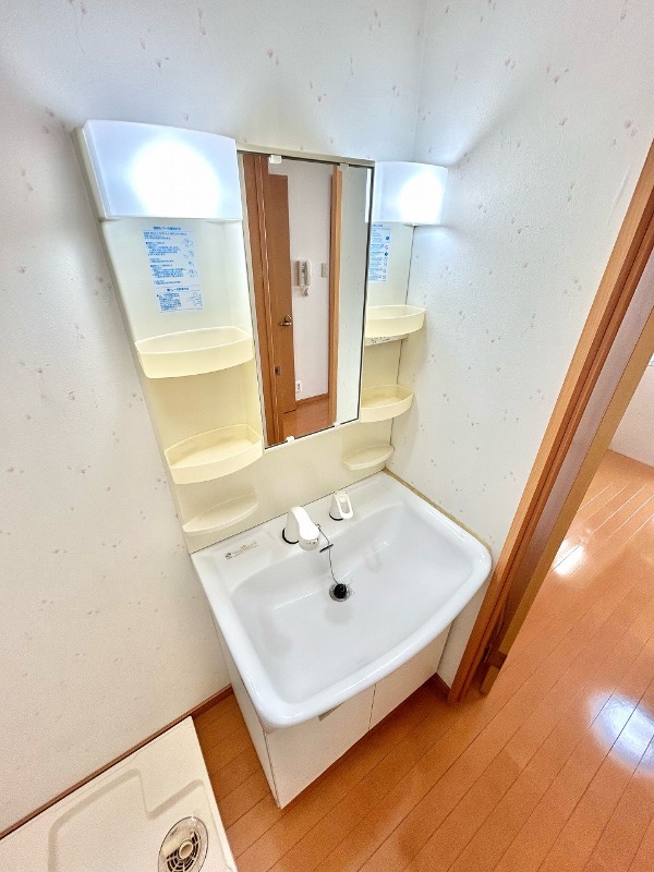 | 設備 | インターホン(音声)、専用ゴミ置き場(あり)、駐輪場、通風良好、フローリング、全居室フローリング、クッションフロア、ベランダ・バルコニー、クローゼット、クローゼット数(3)、下駄箱、バス・トイレ別(別室)、シャワー、脱衣所、給湯、ウォシュレット、洗面台、洗面所独立、シャンプードレッサー、洗濯機置き場(室内)、コンロ設置済、コンロ口数(2)、システムキッチン、エアコン、エアコン台数(1) | ||