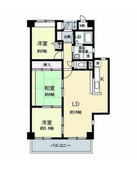 洋室 5.6畳 洋室 5畳 和室 6畳 |