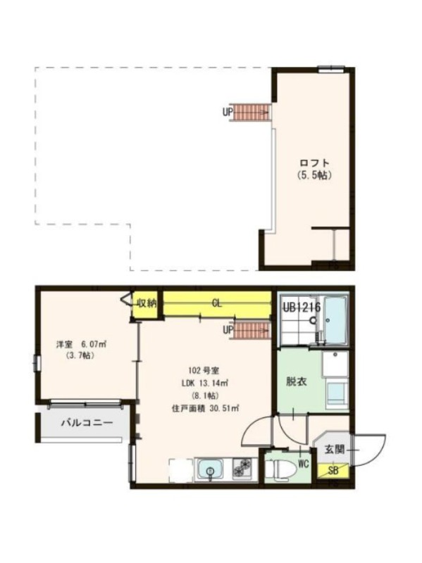 | 間取り | 1LDK | 面積 | 30.51㎡ |