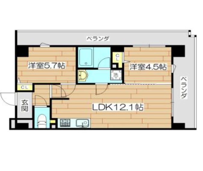 | 間取り詳細 | LDK 12.1畳 、 洋室 5.7畳 、 洋室 4.5畳 |