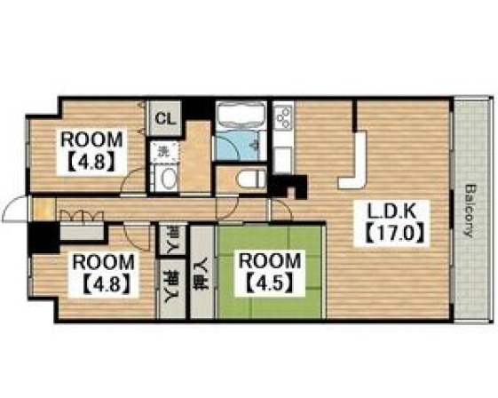 | 間取り詳細 | LDK 17畳 、 洋室 4.8畳 、 洋室 4.8畳 、 和室 4.5畳 |