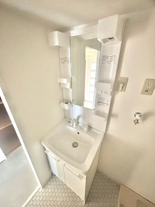 | 設備 | ガス(都市ガス)、インターホン(TVモニター付き)、専用ゴミ置き場(あり)、駐輪場、日当り良好、通風良好、フローリング、クッションフロア、ベランダ・バルコニー、クローゼット、クローゼット数(3)、押入れ、下駄箱、バス・トイレ別(別室)、シャワー、脱衣所、給湯、ウォシュレット、洗面台、洗面所独立、シャンプードレッサー、洗濯機置き場(室内)、コンロ設置済、コンロ口数(3)、コンロ種類(都市ガス)、グリル、システムキッチン、カウンターキッチン、エアコン、エアコン台数(1) | ||