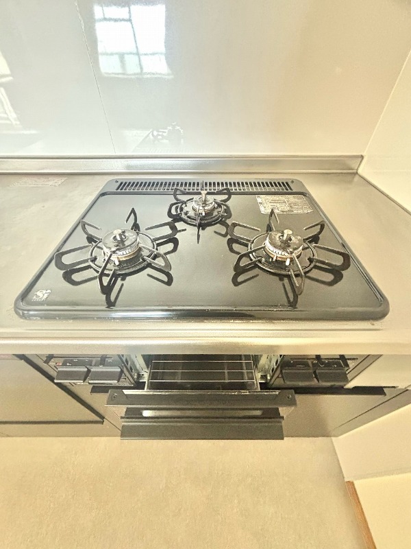 グリル付きの3口コンロで段取り良くお料理が出来ます♪