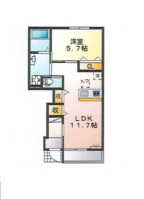 | 間取り詳細 | LDK 11.7畳 、 洋室 5.7畳 |