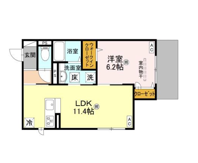 | 間取り詳細 | LDK 11.4畳 、 洋室 6.2畳 |
