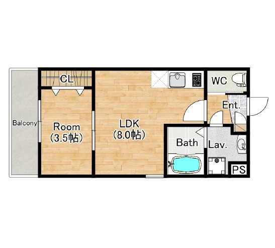| 間取り詳細 | LDK 8畳 、 洋室 3.5畳 |