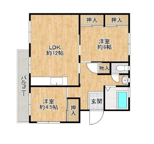 | 間取り詳細 | LDK 12畳 、 洋室 6畳 、 洋室 4.5畳 |