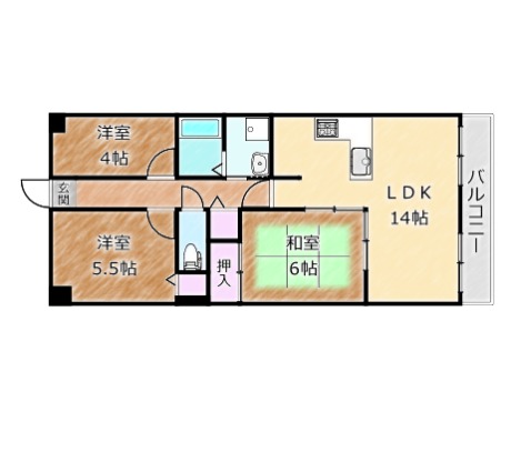 | 間取り詳細 | LDK 14畳 、 洋室 5.5畳 、 洋室 4畳 、 和室 6畳 |