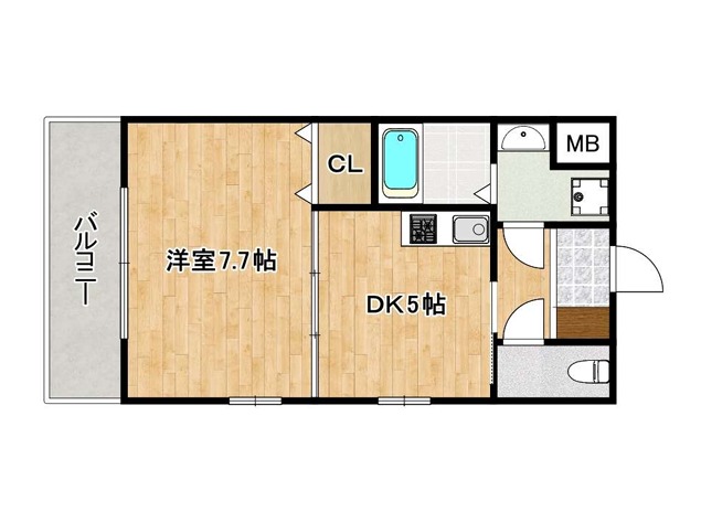 | 間取り詳細 | DK 5畳 、 洋室 7.7畳 |