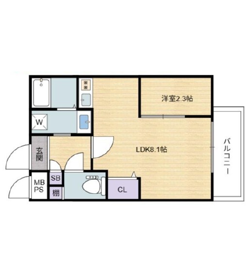 | 間取り詳細 | LDK 8.1畳 、 洋室 2.3畳 |