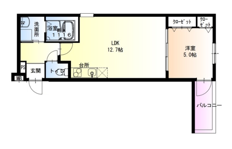 | 間取り詳細 | LDK 12.7畳 、 洋室 5畳 |