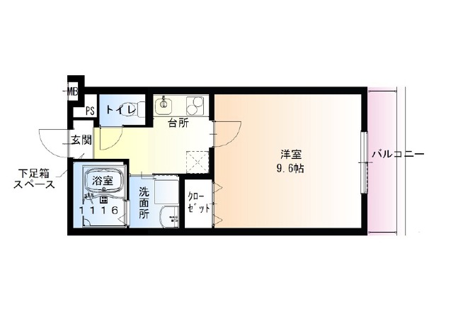 | 間取り詳細 | 洋室 9.6畳 、 K 2.5畳 |