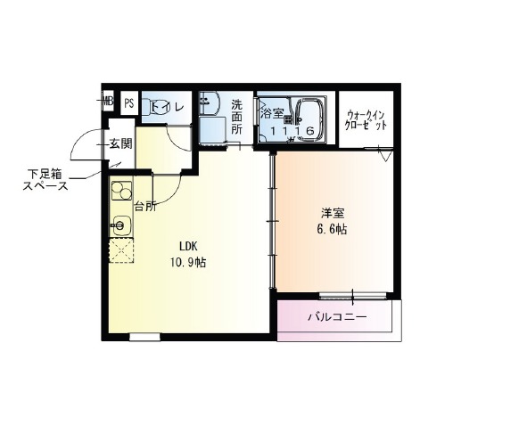 | 間取り詳細 | LDK 10.9畳 、 洋室 6.6畳 |
