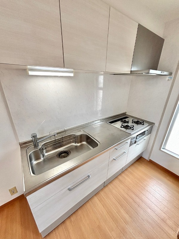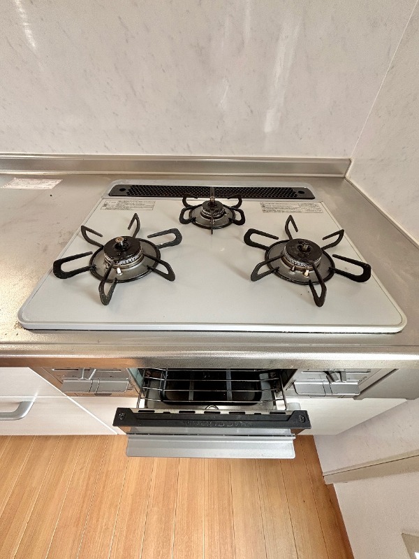 | 設備 | ガス(都市ガス)、インターホン(TVモニター付き)、専用ゴミ置き場(あり)、駐輪場、通風良好、フローリング、クッションフロア、ベランダ・バルコニー、2面バルコニー、押入れ、バス・トイレ別(別室)、シャワー、脱衣所、給湯、ウォシュレット、洗面台、洗面所独立、シャンプードレッサー、洗濯機置き場(室内)、コンロ設置済、コンロ口数(3)、コンロ種類(都市ガス)、グリル、システムキッチン | ||