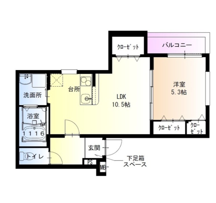 | 間取り詳細 | LDK 10.5畳 、 洋室 5.3畳 |