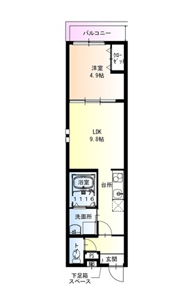 | 間取り詳細 | LDK 9.8畳 、 洋室 4.9畳 |