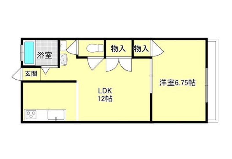 | 間取り詳細 | LDK 12畳 、 洋室 6.75畳 |