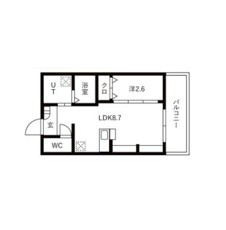 | 間取り | 1LDK | 面積 | 26.8㎡ |