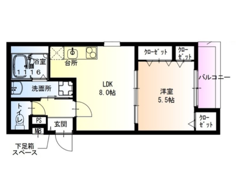 | 間取り詳細 | LDK 8畳 、 洋室 5.5畳 |