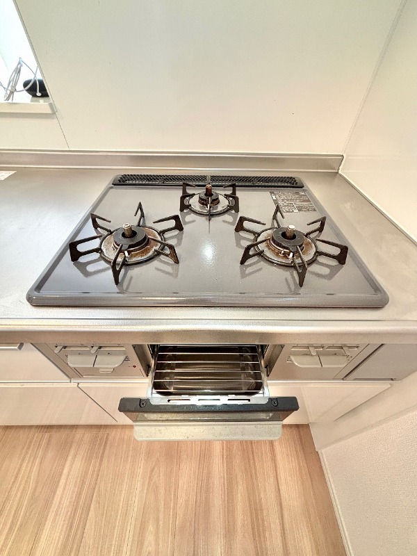 グリル付きの3口コンロで段取り良くお料理が出来ます♪