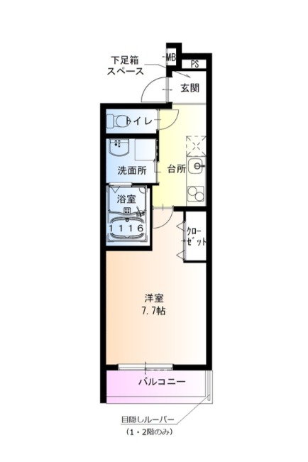 | 間取り詳細 | 洋室 7.7畳 、 K 畳 |