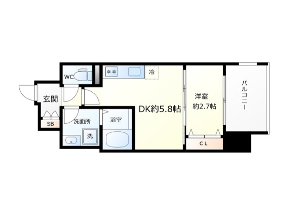 | 間取り詳細 | DK 5.8畳 、 洋室 2.7畳 |