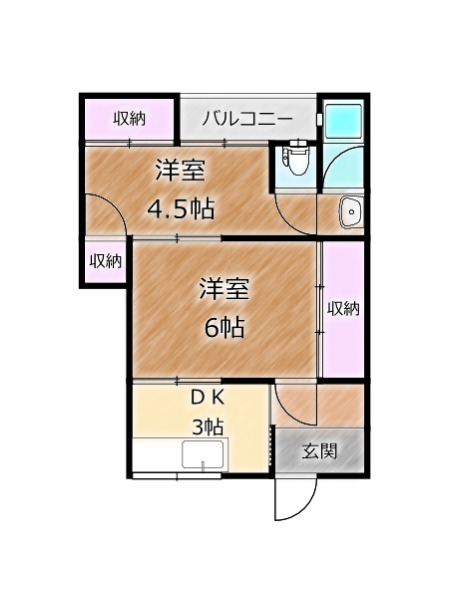 | 間取り詳細 | K 3畳 、 洋室 6畳 、 洋室 4.5畳 |
