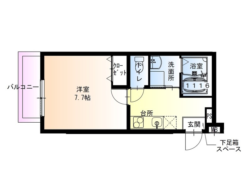 | 間取り詳細 | 洋室 7.7畳 、 K 2.5畳 |