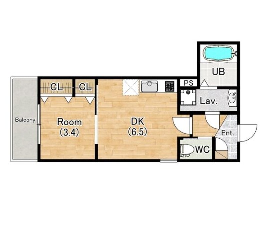 | 間取り詳細 | DK 6.5畳 、 洋室 3.4畳 |