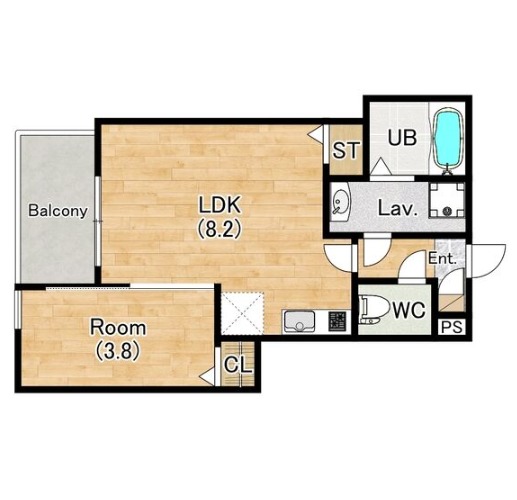 | 間取り詳細 | LDK 8.2畳 、 洋室 3.8畳 |