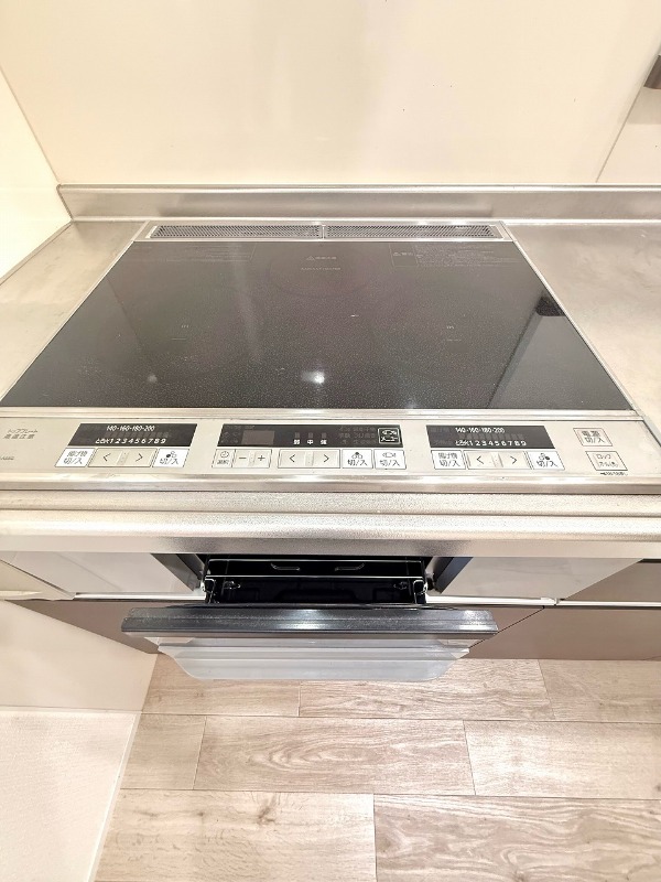 | 設備 | ガス(都市ガス)、インターホン(TVモニター付き)、宅配ボックス、専用ゴミ置き場(あり)、駐輪場、通風良好、フローリング、全居室フローリング、クッションフロア、間接照明、ベランダ・バルコニー、クローゼット、クローゼット数(4)、下駄箱、バス・トイレ別(別室)、シャワー、浴室乾燥機、脱衣所、給湯、ウォシュレット、ウォームレット、洗面台、洗面所独立、洗濯機置き場(室内)、コンロ設置済、コンロ口数(3)、コンロ種類(IH)、システムキッチン、カウンターキッチン、24H換気システム | ||