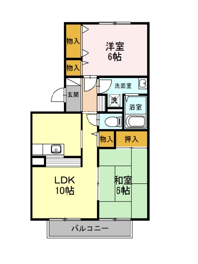 | 間取り詳細 | LDK 10畳 、 洋室 6畳 、 和室 6畳 |