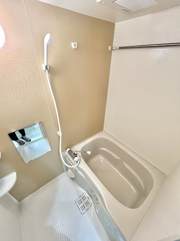 | 設備 | ガス(都市ガス)、インターホン(TVモニター付き)、防犯カメラ、オートロック、宅配ボックス、専用ゴミ置き場(あり)、駐輪場、日当り良好、通風良好、フローリング、全居室フローリング、クッションフロア、照明器具、ベランダ・バルコニー、クローゼット、クローゼット数(1)、ウォークインクローゼット、ウォークインクローゼット数(1)、バス・トイレ別(別室)、シャワー、浴室乾燥機、脱衣所、給湯、ウォシュレット、ウォームレット、洗面台、洗面所独立、シャンプードレッサー、洗濯機置き場(室内)、コンロ設置済、コンロ口数(2)、コンロ種類(IH)、システムキッチン、エアコン、エアコン台数(1)、24H換気システム、CATV、インターネット使用料無料 | ||