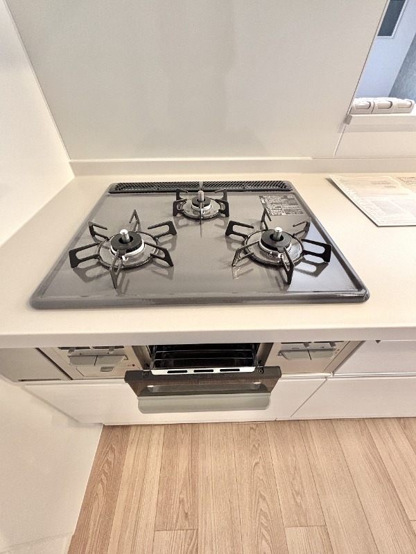| 設備 | ガス(都市ガス)、インターホン(TVモニター付き)、カードキー、オートロック、宅配ボックス、専用ゴミ置き場(あり)、駐輪場、通風良好、フローリング、全居室フローリング、クッションフロア、照明器具、ベランダ・バルコニー、クローゼット、クローゼット数(1)、ウォークインクローゼット、ウォークインクローゼット数(1)、下駄箱、バス・トイレ別(別室)、シャワー、追い焚き、浴室乾燥機、脱衣所、給湯、浴室1坪以上、ウォシュレット、ウォームレット、洗面台、洗面所独立、シャンプードレッサー、洗濯機置き場(室内)、コンロ設置済、コンロ口数(3)、コンロ種類(都市ガス)、グリル、システムキッチン、カウンターキッチン、エアコン、エアコン台数(3)、24H換気システム、CATV、インターネット使用料無料 | ||