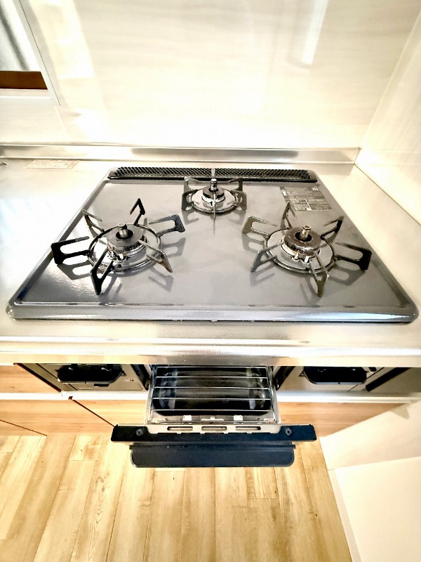 グリル付きの3口コンロで段取り良く料理が出来ます♪