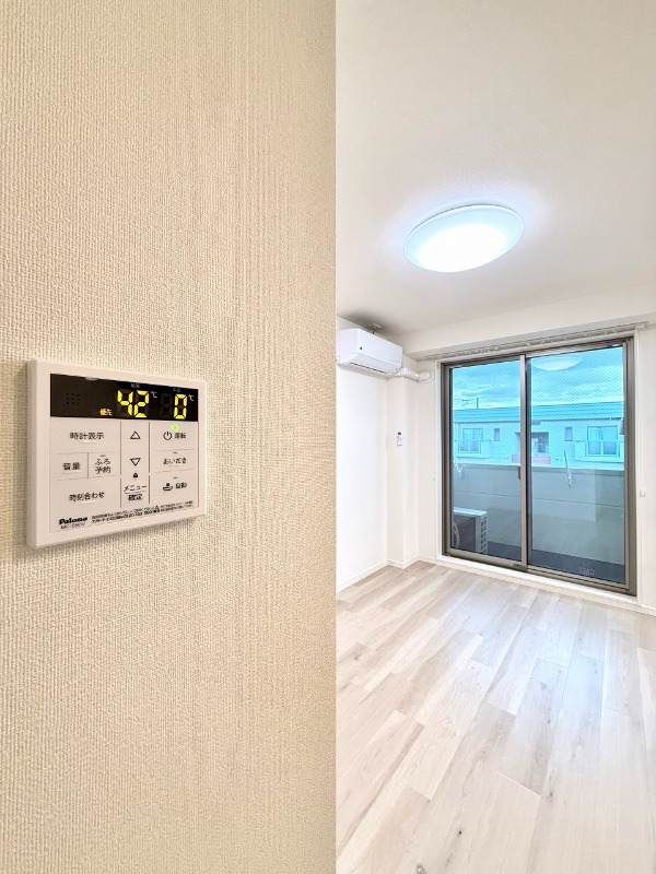| 設備 | ガス(都市ガス)、インターホン(TVモニター付き)、防犯カメラ、オートロック、宅配ボックス、専用ゴミ置き場(あり)、駐輪場、バイク置き場、日当り良好、通風良好、フローリング、全居室フローリング、クッションフロア、照明器具、ベランダ・バルコニー、クローゼット、クローゼット数(1)、下駄箱、バス・トイレ別(別室)、シャワー、追い焚き、浴室乾燥機、脱衣所、給湯、ウォシュレット、洗面台、洗面所独立、シャンプードレッサー、洗濯機置き場(室内)、コンロ設置済、コンロ口数(2)、コンロ種類(都市ガス)、システムキッチン、カウンターキッチン、エアコン、エアコン台数(1)、インターネット使用料無料 | ||