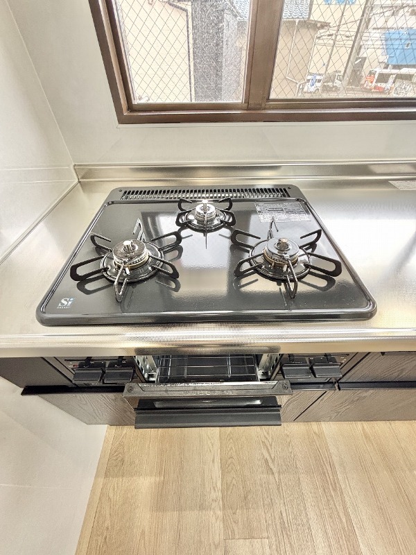 グリル付きの3口コンロで段取り良くお料理が出来ます♪
