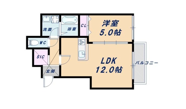 | 間取り詳細 | LDK 12畳 、 洋室 5畳 |