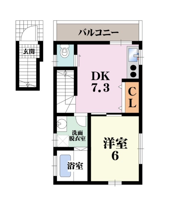 | 間取り詳細 | DK 7.3畳 、 洋室 6畳 |