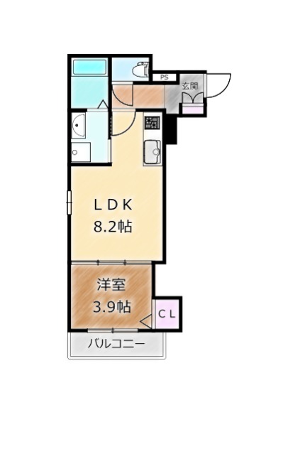 | 間取り詳細 | LDK 8.2畳 、 洋室 3.9畳 |