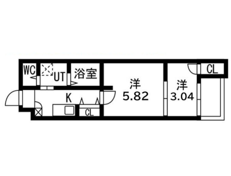 | 間取り詳細 | 洋室 5.82畳 、 洋室 3.04畳 、 K 2.5畳 |