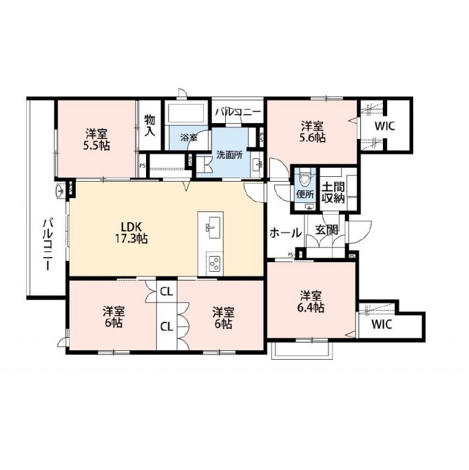 | 間取り詳細 | LDK 17.3畳 、 洋室 6.4畳 、 洋室 6畳 、 洋室 6畳 、 洋室 5.6畳 、 洋室 5.5畳 |