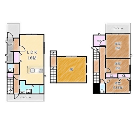 | 間取り詳細 | LDK 16畳 、 洋室 8畳 、 洋室 5.5畳 、 洋室 5畳 |