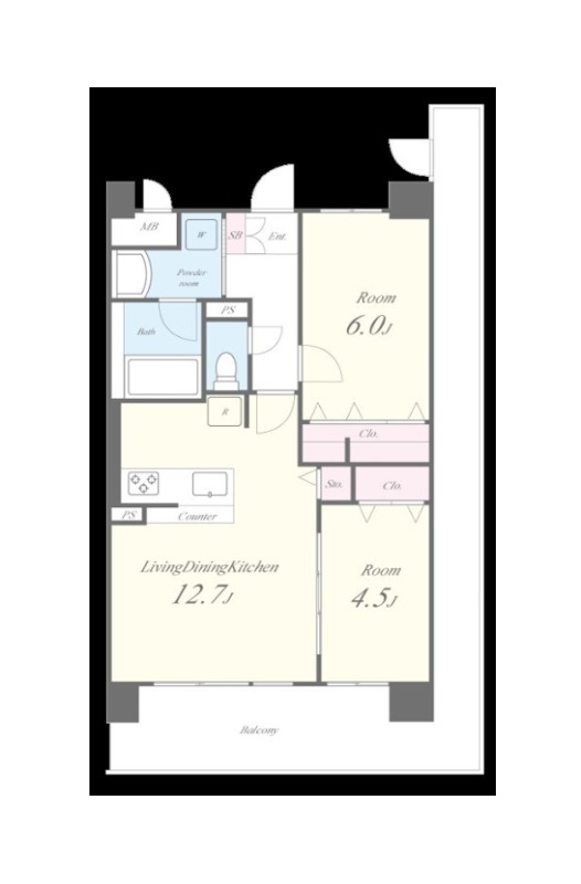 | 間取り詳細 | LDK 12.7畳 、 洋室 6畳 、 洋室 4.5畳 |