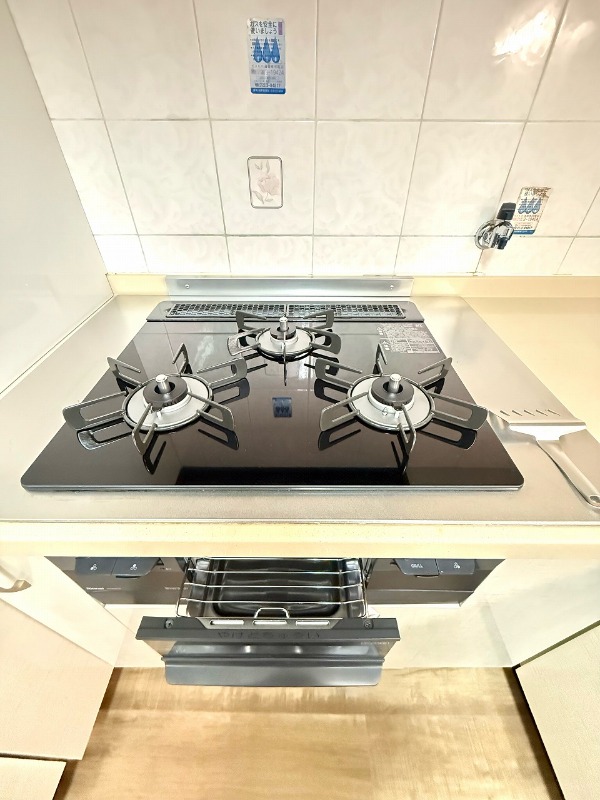 | 設備 | ガス(都市ガス)、インターホン(TVモニター付き)、専用ゴミ置き場(あり)、駐輪場、通風良好、フローリング、クッションフロア、ベランダ・バルコニー、2面バルコニー、クローゼット、クローゼット数(2)、押入れ、下駄箱、バス・トイレ別(別室)、シャワー、追い焚き、脱衣所、給湯、ウォシュレット、洗面台、洗面所独立、シャンプードレッサー、洗濯機置き場(室内)、コンロ設置可、コンロ口数(3)、コンロ種類(都市ガス)、システムキッチン、L字型キッチン、エアコン | ||
