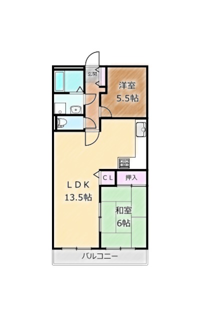 | 間取り詳細 | LDK 13.5畳 、 和室 6畳 、 洋室 5.5畳 |